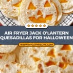 This Air Fryer Jack O’Lantern Quesadillas Recipe has quickly become one of my go-to festive snacks every October. It’s fun to make, a hit with everyone at the table, and hits that perfect balance of crispy and melty that you just can’t resist. I hope you give these a try — seriously, carve out a little time one afternoon, surprise your family or friends, and enjoy the smiles that follow. It’s one of those simple holiday treats that makes great memories, and you’ll be glad you made it!