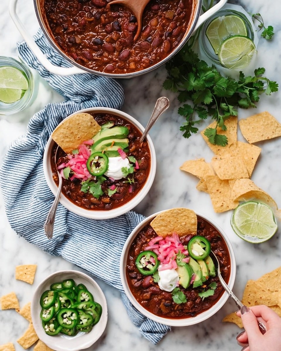 I like pairing this chili with cornbread or warm flour tortillas to soak up all the juices. A simple green salad with a tangy vinaigrette balances the richness nicely. For a heartier meal, Mexican-style rice or roasted sweet potatoes make wonderful accompaniments.