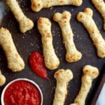 Once out of the oven, serve the breadstick bones warm with a bowl of marinara sauce for dipping. The tangy tomato sauce balances all the cheesy richness perfectly. I always recommend enjoying these fresh—your family will love dunking every last bite into that sauce!