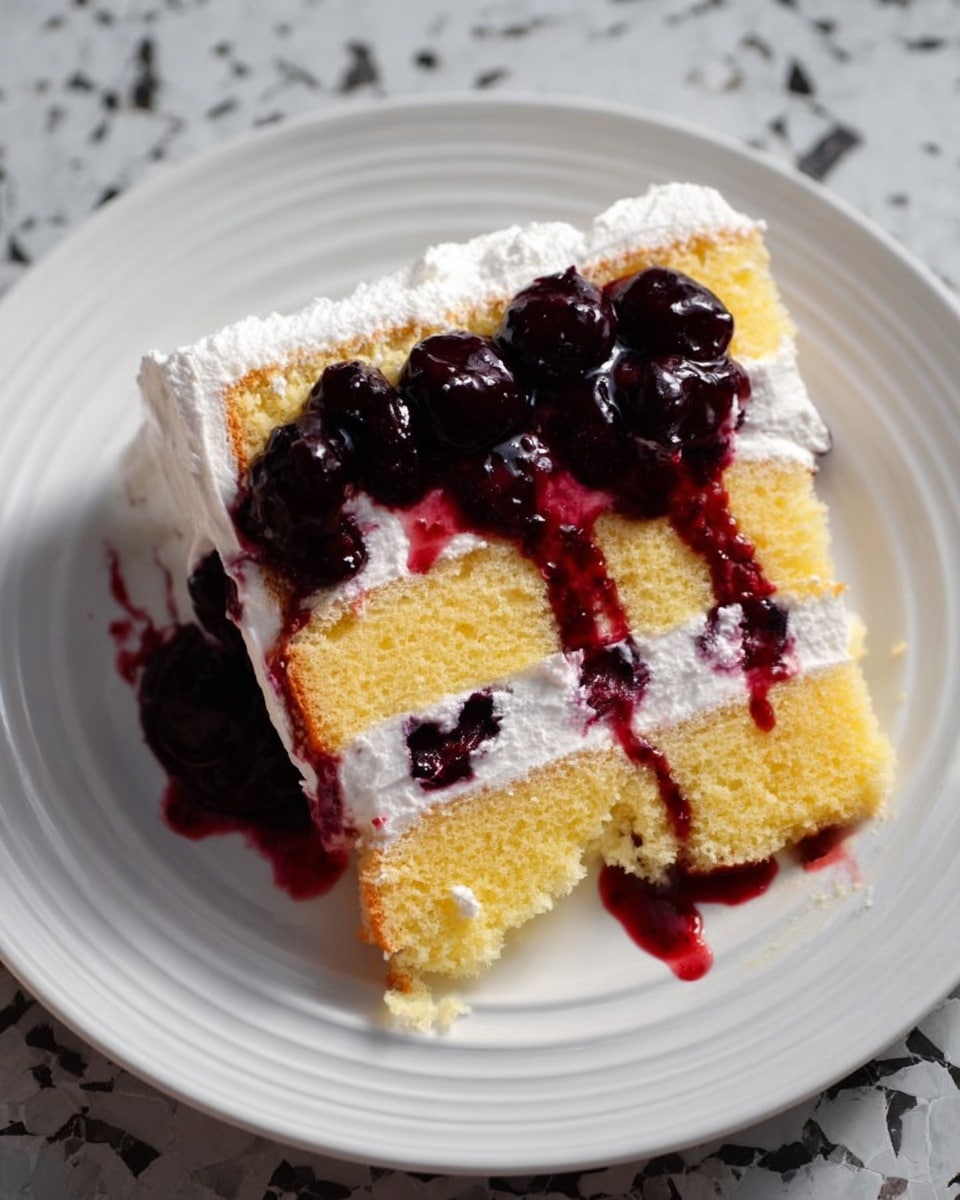 8. Serve: When serving, plate each slice of cake with additional cherry pie filling spooned on the side or drizzled to drip down the cake for extra flavor and presentation appeal.