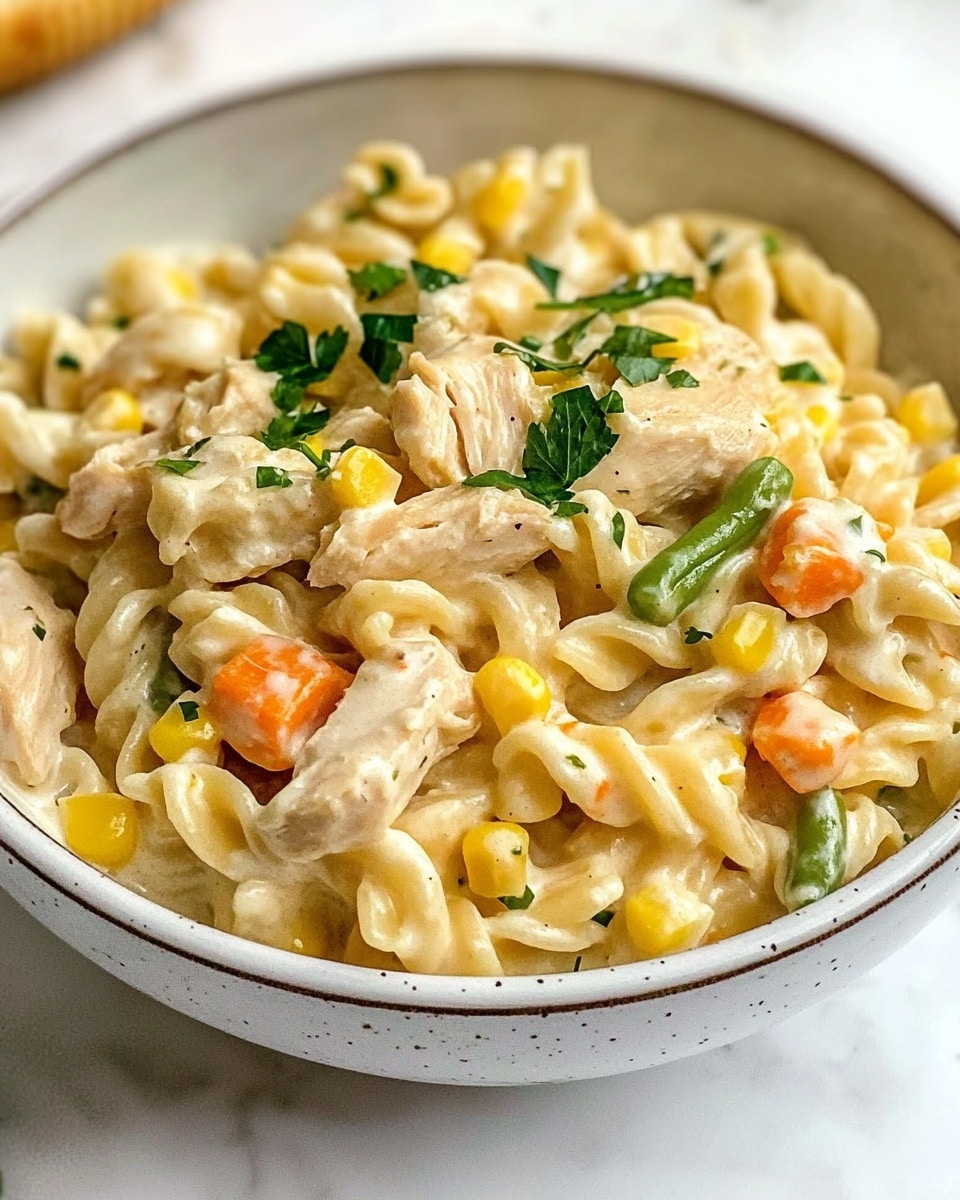• Comfort Food with a Twist: It combines all the classic pot pie flavors but turns them into an easy, creamy pasta dish.