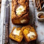 PrintCream Cheese Swirled Pumpkin Banana Bread with Salted Maple Butter Recipe