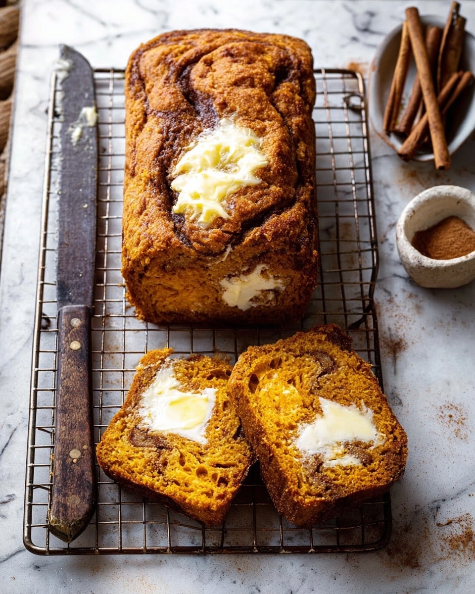 For holidays or gifting, I’ve wrapped this loaf in parchment paper tied with a rustic twine bow, maybe with a cinnamon stick tucked in. You can also turn slices into French toast—dip in egg mixture and fry for a weekend brunch upgrade. Another fun idea is to slice thick and layer with cream cheese frosting for a simple pumpkin bread “cake.”