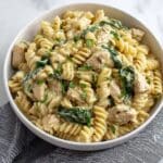 Leftover creamy chicken spinach Alfredo pasta stores great in an airtight container in the fridge for up to 3 days. I always recommend adding a splash of milk or cream when reheating to bring back that saucy, creamy texture.