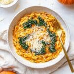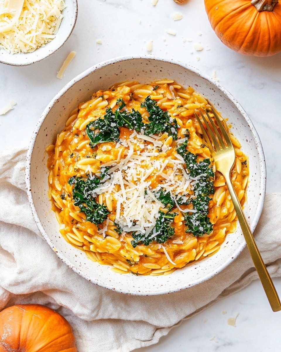 This creamy roasted butternut squash and kale orzo pasta combines tender, caramelized squash with hearty kale and a rich Parmesan-infused orzo for a comforting, flavorful vegetarian dish perfect for any season.