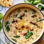 Creamy Tuscan Chicken Soup is a comforting and flavorful one-pot meal featuring tender chicken thighs, small pasta shells, spinach, and sun-dried tomatoes in a rich parmesan and cream broth. With a subtle hint of white wine and garlic, this soup offers a creamy texture and a perfect balance of savory flavors, making it an ideal quick and easy dinner that brings Tuscan-inspired vibes to your table.