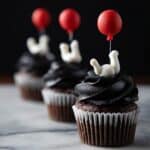 - Decorate the Cupcakes: Once cooled, use decorators icing to frost the cupcakes. Roll out the white, red, and black fondant, using black food coloring as needed to create the clown faces and creepy details inspired by the IT movie. Attach the fondant decorations carefully on each cupcake to complete the look.
