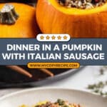 - Stuff Pumpkins: Carefully spoon the sausage and vegetable mixture into the hollowed pumpkins, packing it gently but fully. Place the pumpkin tops back on as lids.