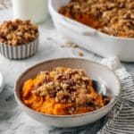 - Watch your oven rack: Placing the casserole in the middle or upper third helps get the topping golden without burning the sweet potatoes underneath.
