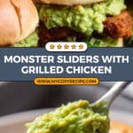 I don’t usually freeze these assembled sliders because guacamole doesn’t freeze well, but you can freeze the grilled chicken thighs ahead of time. Just thaw and warm before piecing together your monster sliders for quick prep on the day of your party.