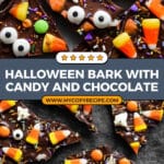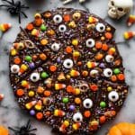 When I serve Halloween bark, I like to add an extra sprinkle of flaky sea salt right before serving — it really makes the chocolate pop. Sometimes I toss a few extra candy eyeballs or gummy worms on the plate for that extra spooky vibe.