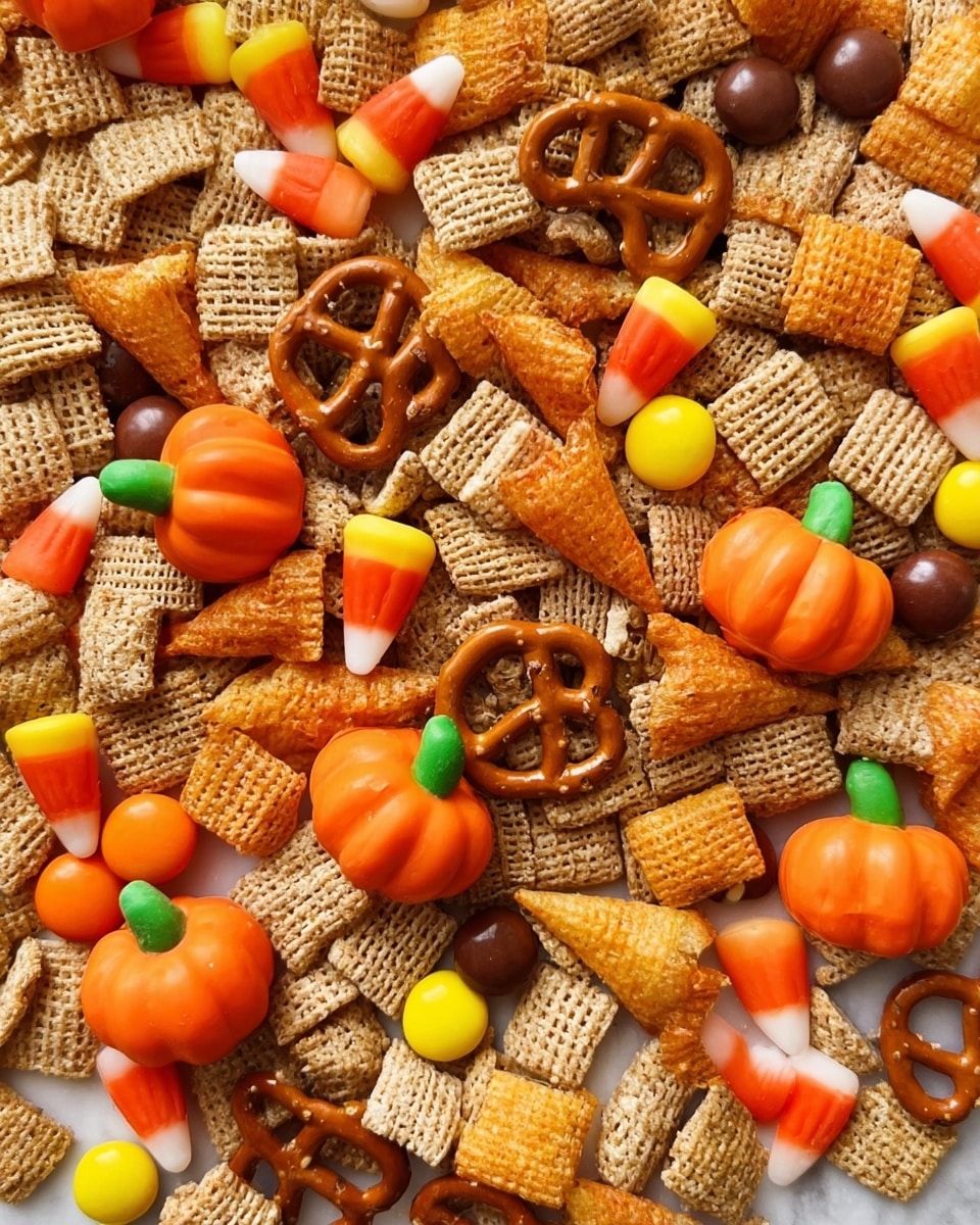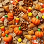 This Halloween Harvest Hash Chex Mix is a delightful blend of sweet, salty, and crunchy flavors perfect for festive gatherings or seasonal snacking. Combining buttery, caramelized cereal and pretzels baked to crispy perfection, then mixed with vibrant candy corn, candy pumpkins, and Reese’s Pieces for a festive touch.