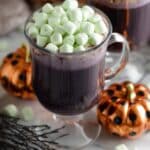 Serve the hot chocolate in clear mugs or glasses to really showcase that dramatic purple color. For extra spooky appeal, rim your cups with colored sugar or crushed candy corn. If you’re hosting a party, setting up a DIY hot chocolate bar with toppings and mix-ins is always a crowd-pleaser — and party guests love customizing their own cups!