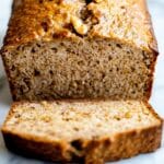 This banana bread pairs perfectly with a cup of coffee or tea, making it a comforting breakfast or snack combo. I also like to plate it alongside fresh fruit or a dollop of Greek yogurt, especially when serving to guests — it rounds out the meal in a nice, healthy way.