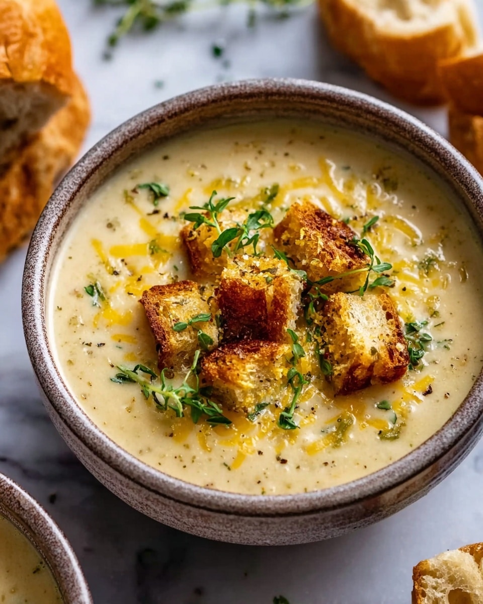 For special occasions, try serving the soup in hollowed-out bread bowls—it’s a showstopper and doubles as an edible vessel. You can also layer garnishes artfully in clear glass bowls to showcase the creamy texture and vibrant herbs. Making individual mini crostini topped with sharp cheddar or garlic butter provides a lovely accompaniment and a bit of flair.