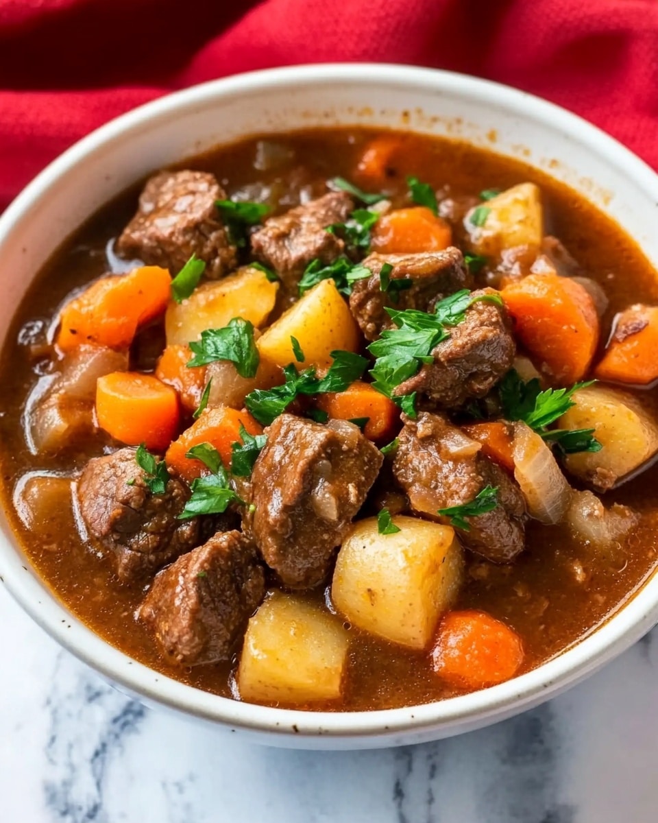 I store leftover stew in airtight containers in the fridge for up to 4 days. When reheating, I prefer warming it gently on the stovetop so it heats evenly and doesn’t get too thick or dry.