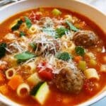 Reheat leftovers gently on the stovetop over low to medium heat to avoid breaking up the meatballs. If you’re reheating frozen soup, thaw it overnight in the fridge first, then warm it slowly. Adding a splash of broth or water during reheating helps refresh the soup if it’s thickened too much.