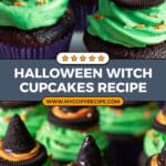 Melted Witch Cupcakes are a spooky and delicious Halloween treat combining rich dark chocolate fudge cake with creamy chocolate pudding and a green witchy whipped topping. These cupcakes are topped with Oreos, Hershey Kisses, grape gummies, and black icing to create a fun, melted witch design perfect for Halloween parties.