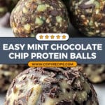 Delicious and nutritious Mint Chocolate Chip Protein Balls made with almond butter, rolled oats, and vanilla protein powder. These no-bake snacks offer a refreshing peppermint flavor combined with chocolate chips, perfect for a healthy energy boost anytime.