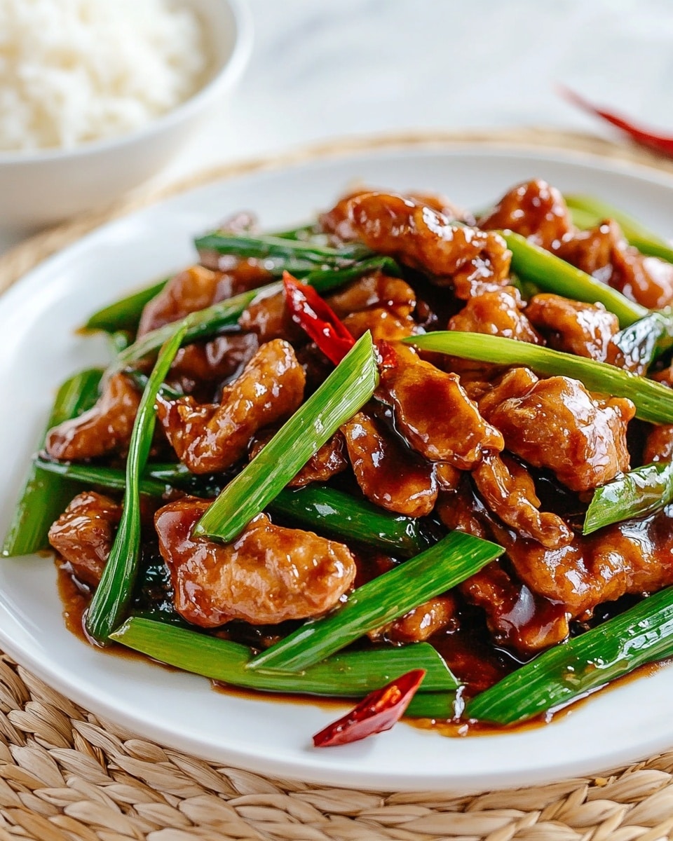 This Mongolian Chicken recipe features crispy, juicy chicken pieces coated in a flavorful hoisin-soy glaze with garlic, ginger, and a touch of spice. Perfectly cooked on the stovetop or air fryer for a quick and satisfying Asian-inspired meal, it pairs wonderfully with rice or noodles for a delicious weeknight dinner.