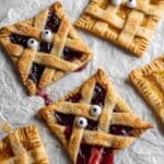 These spooky and adorable Mummy Hand Pies are a delightful Halloween treat made with flaky pie dough filled with sweet jam and decorated with cinnamon sugar and candy eyes. Perfectly golden and easy to make, they are great for parties or festive snacks for kids and adults alike.