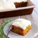 I store leftover pumpkin caramel poke cake tightly covered in the fridge to keep the frosting fresh and avoid drying out the cake. It holds up well for about 4-5 days if you cover it properly. I usually slice and cover the cake with plastic wrap and then an airtight container to keep that moist texture.