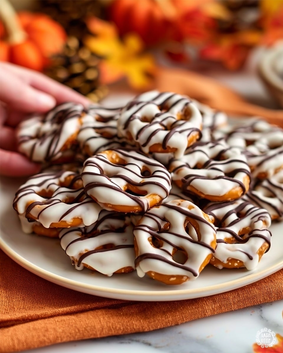 Try arranging the pretzels in small mason jars or clear cellophane bags tied with orange or brown ribbons for gifting. Another fun idea I’ve done is stacking them in layers with wax paper between, then wrapping with twine as a hostess gift—always a crowd-pleaser!