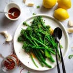A quick and flavorful sautéed broccolette recipe featuring garlic, lemon, and Aleppo chili infused olive oil. This dish combines a brief blanching step with a fast sauté for a delicious, vibrant side that’s vegan, keto-friendly, and gluten-free.