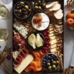 This Thanksgiving Cheese Board is the perfect no-cook appetizer featuring a delightful assortment of olives, cured meats, nuts, cheeses, and fresh fruits artfully arranged to please every palate. With a mix of creamy, savory, sweet, and crunchy elements, it’s an effortless yet elegant starter for your holiday celebration.
