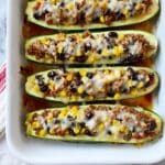 PrintTurkey Santa Fe Zucchini Boats Recipe