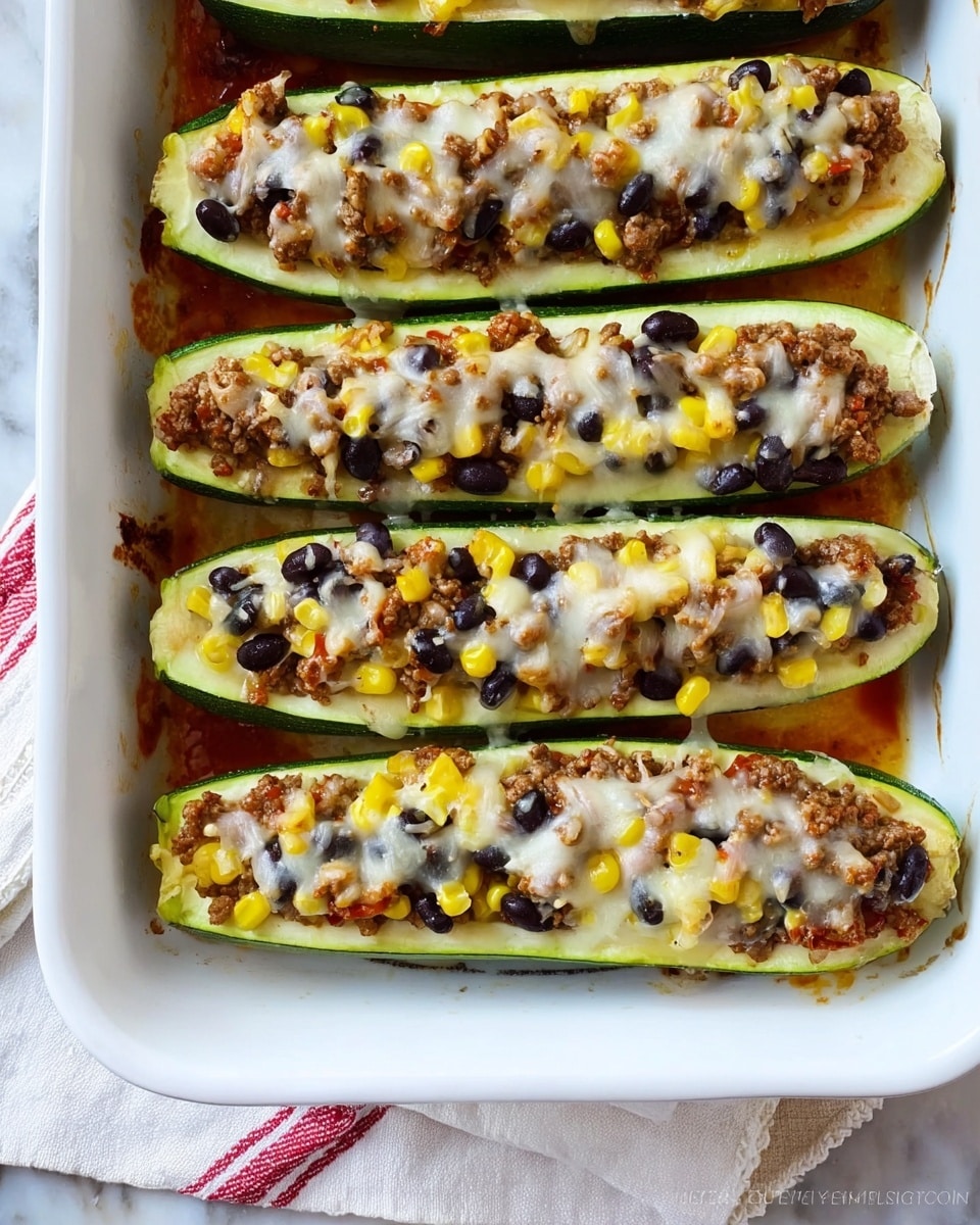 - Dry the zucchini flesh well: This avoids watery filling and keeps your boats firm instead of soggy.