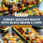 - This recipe offers a delicious way to enjoy a cumin-spiced ground turkey and black bean filling with fresh corn and tomato, all baked inside nutrient-rich zucchini boats topped with melted cheese.