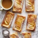 - Assemble Tarts: Place the puff pastry rectangles onto a Silpat-lined baking sheet. Arrange the apple slices in a straight, overlapping line on each pastry piece. Dot small pieces of butter on top of the apples for richness.