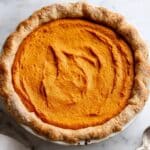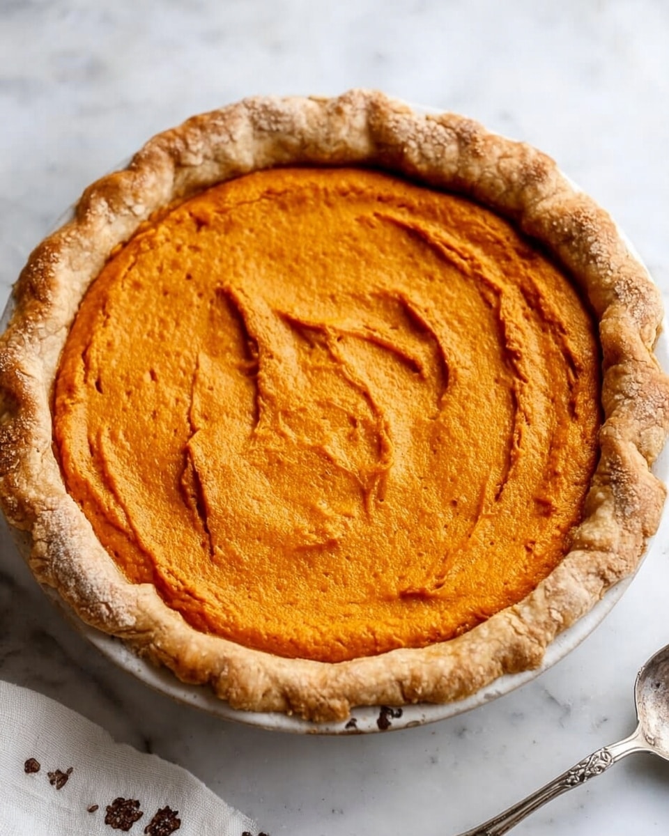 - Fill Pie Crust: Pour the sweet potato filling evenly into the chilled pie crust, smoothing the top with a spatula.