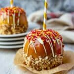 I wrap each leftover apple individually in wax paper or parchment and keep them in an airtight container in the fridge. This keeps the coating nice and firm and prevents the apples from drying out. I’ve had some stay good up to 3 days, but they’re usually gone much faster in my house!